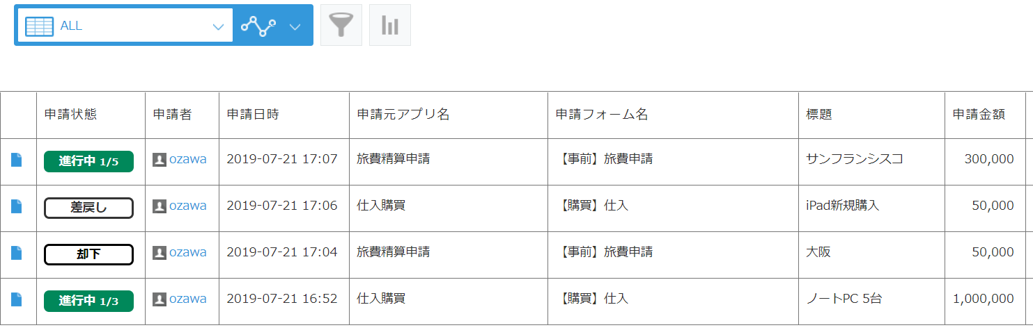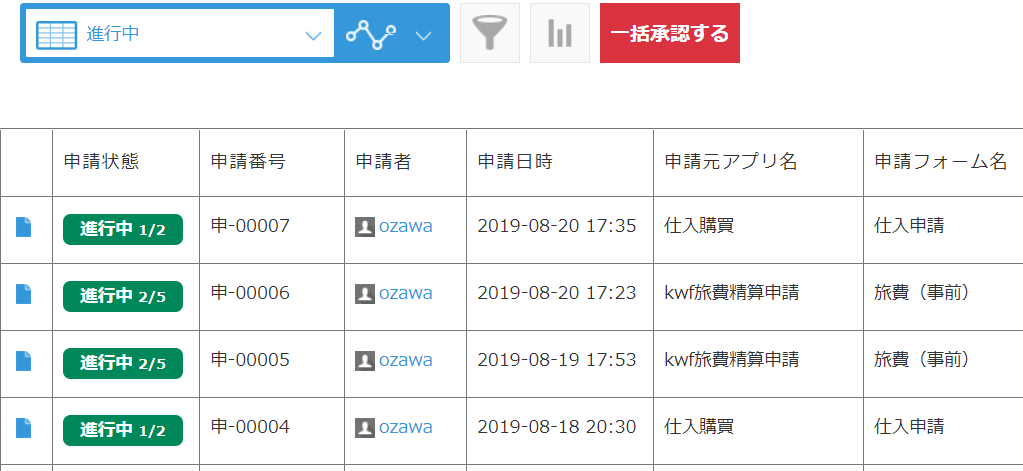 それにより申請元のアプリが複数あったとしても、申請は1つのアプリにすべて集約されますのでアプリの一覧画面ですべての申請内容を確認することが出来ます。