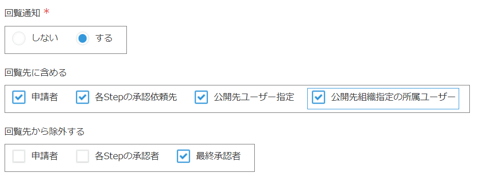 (kintone標準機能ではアプリごとに設定ですが、統合型ワークフローではフォームごとに設定することができます)